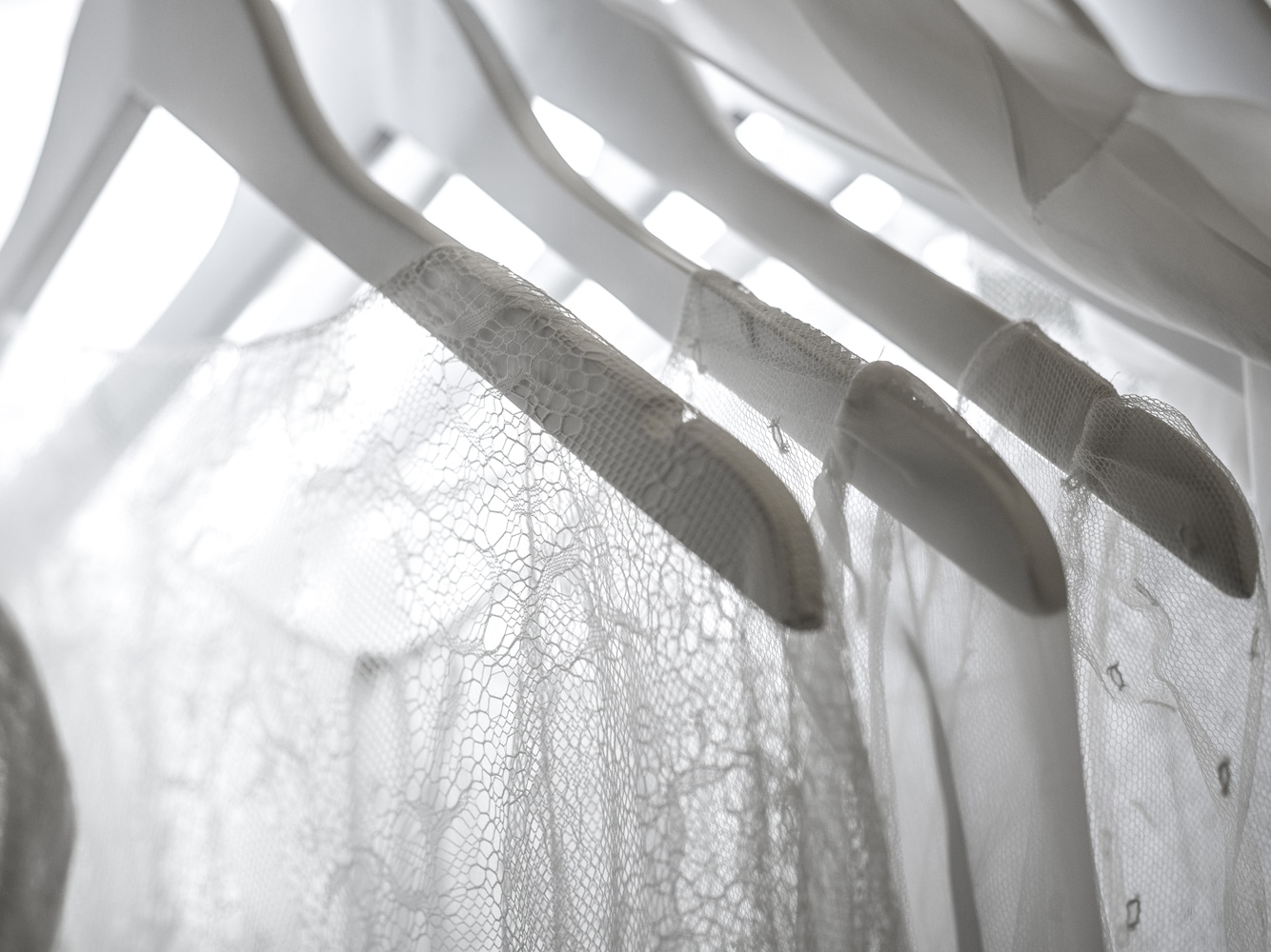 Nos matières sont sélectionnées parmi les plus prestigieux fabricants de France et d’Europe : Dentelle de Calais-Caudry®, crêpe et soieries d’Italie, broderies Parisiennes.